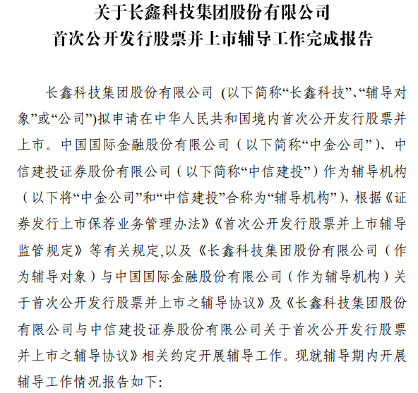 在产品和市场进展势如破竹的同时,长鑫存储的 IPO 之路也在提速。仅仅历时 3 个月,长鑫科技集团股份有限公司 (简称 「长鑫科技」,上市主体)IPO 辅导工作完成。