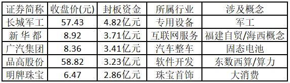 (注:封板资金越多的个股,说明该股被资金追捧,其延续上涨概率较大。)