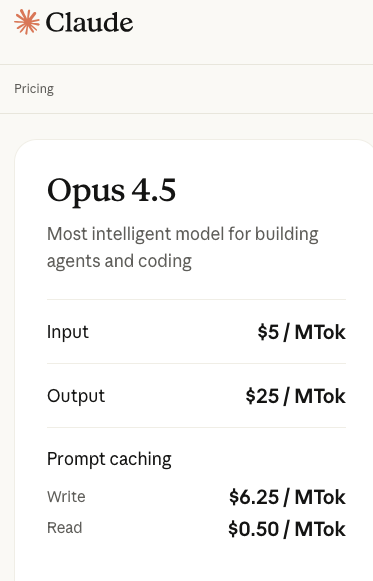 值得注意的是,除了性能提升外,Claude Opus 4.5 的最大的亮点之一是 API 价格大幅下降。目前 Claude Opus 4.5 API 的定价是每百万 tokens 5 美元/25 美元。这一价格相比上一代大模型 Claude Opus 4.1 的 API 定价 15 美元/75 美元,直接砍掉了三分之二。