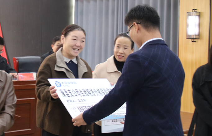 滑县人民政府副县长徐继峰向农户代表颁发理赔凭证