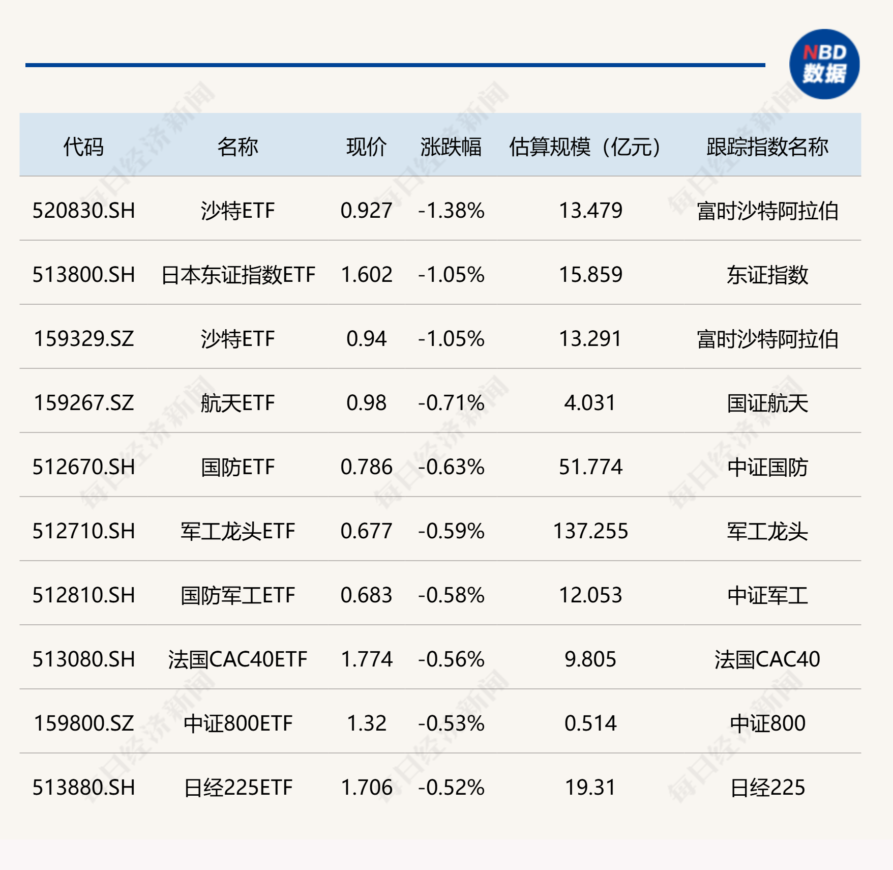 下跌方面,沙特 ETF 跌超 1%。