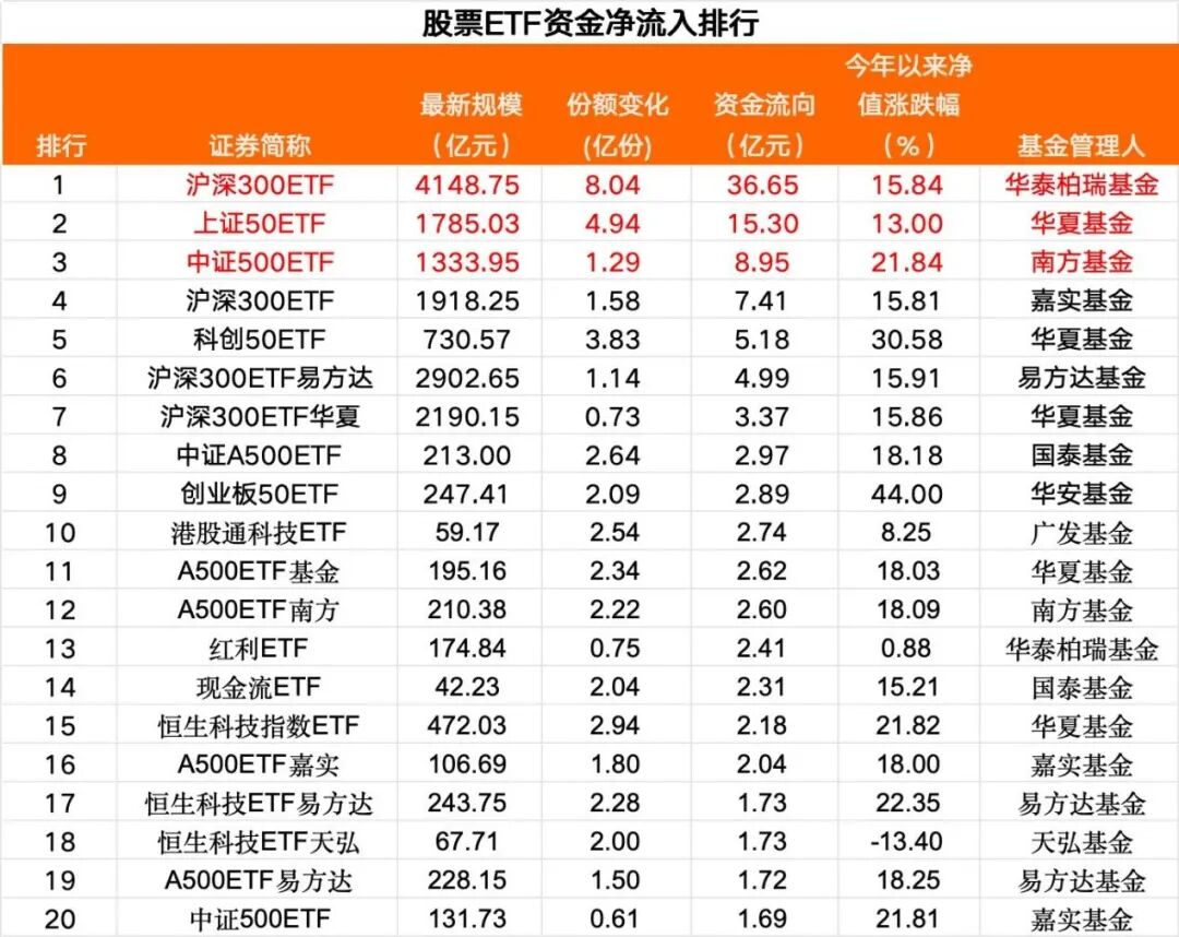 数据显示,头部基金公司旗下部分 ETF 净流入步伐持续。