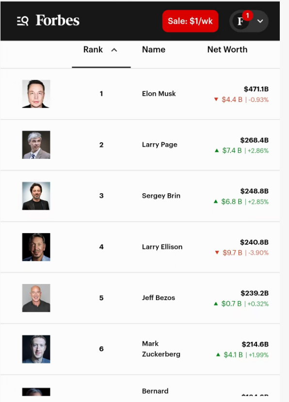近期,甲骨文创办人拉里·埃里森遭遇财富大幅缩水,而谷歌的两位创始人拉里·佩奇和谢尔盖·布林的个人财富则水涨船高。最新的福布斯富豪实时排行榜上,拉里·佩奇和谢尔盖-布林的个人财富分别达 2684 亿美元、2488 亿美元,分别成为世界第二、第三富豪。数据显示,年初至今,谷歌股价涨幅已高达 73%,谷歌公司总市值也飙升至 4 万亿美元附近。