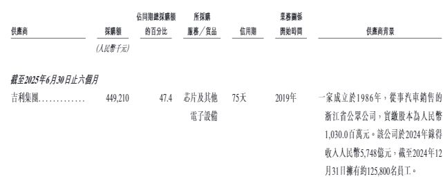 需要指出的是,福瑞泰克去年和今年上半年这家占总采购额 39.5% 和 47.4% 的供应商,也是吉利,福瑞泰克向其采购芯片及其他电子设备。此外,相较于其他主要供应商最高 60 天的信用期,福瑞泰克给予了吉利 75 天的信用期。