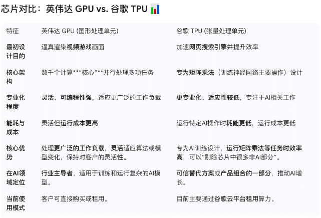 两种芯片都能处理训练 AI 模型所需的大量计算,但方式不同。