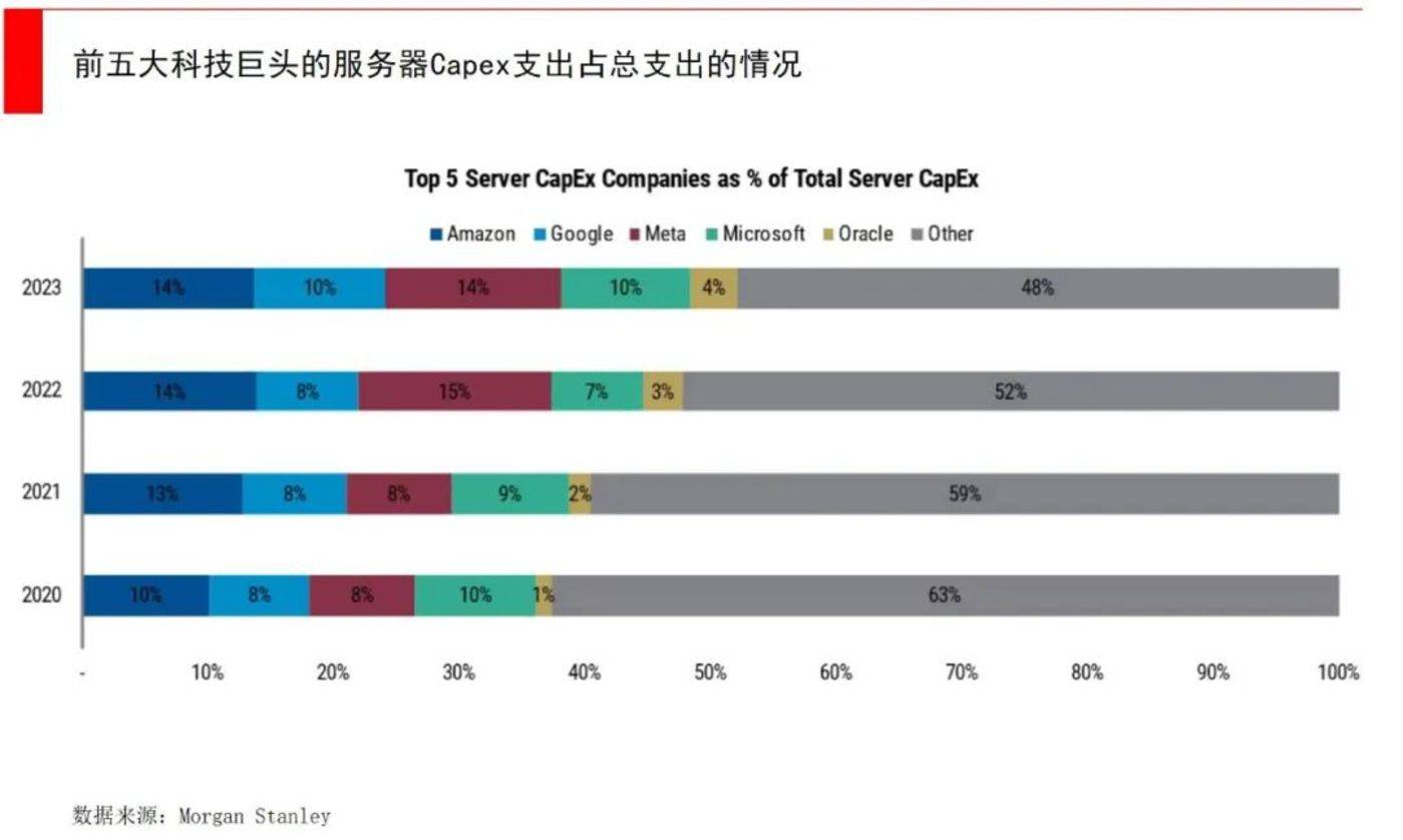 过去一年来,微软、亚马逊、谷歌、Meta 资本支出分别高达 557 亿美元,550 亿美元、443 亿美元、288 亿美元,而这些支出多数都在花在了购买英伟达数据中心产品和服务上。所以才有去年数据中心业务超过 200% 的增速表现。