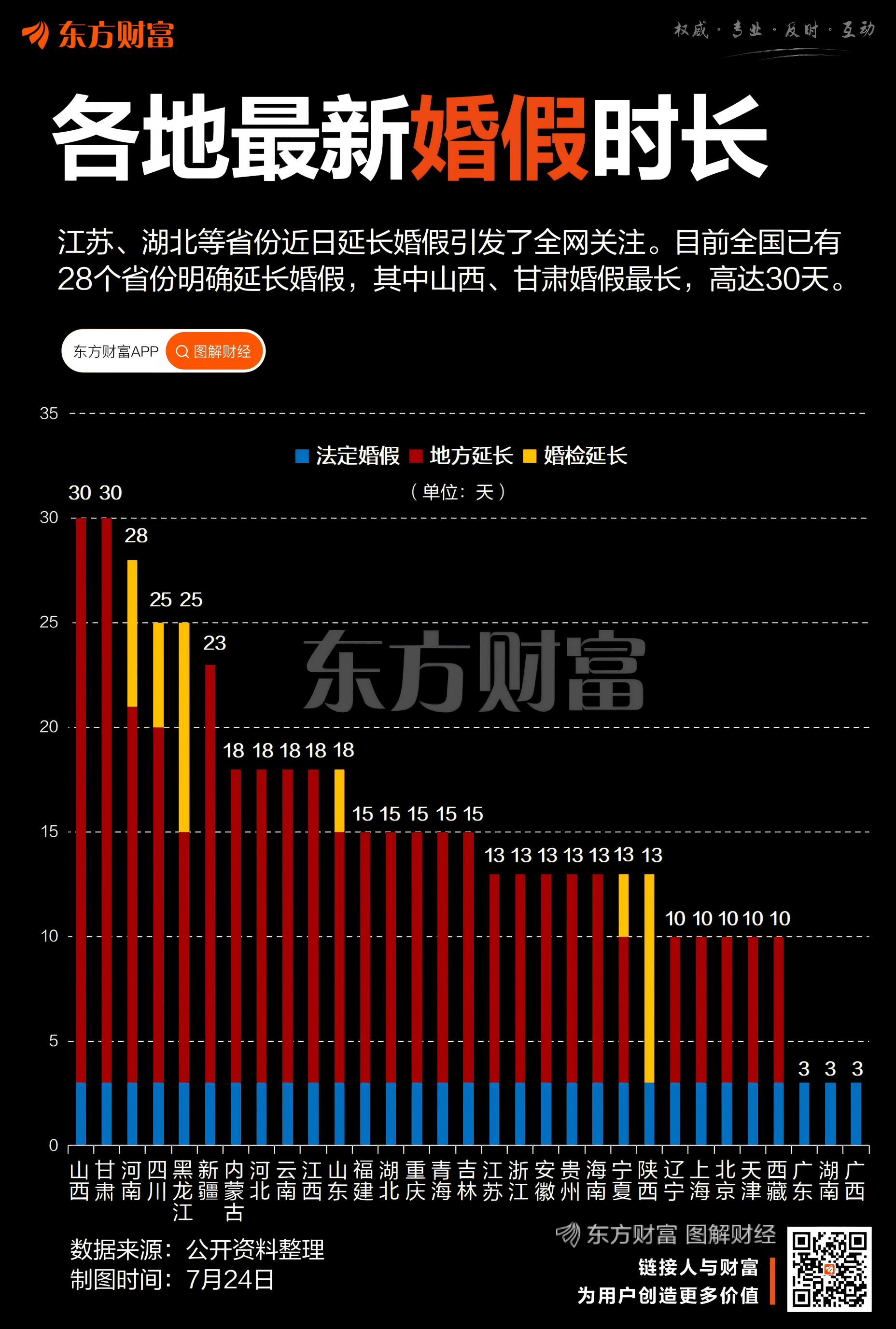 (一) 完善婚假。依法登记的夫妻享受婚假二十日,登记前参加婚前医学检查的,增加五日。