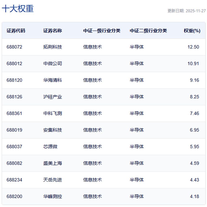 上证科创板半导体材料设备主题指数主要权重股
