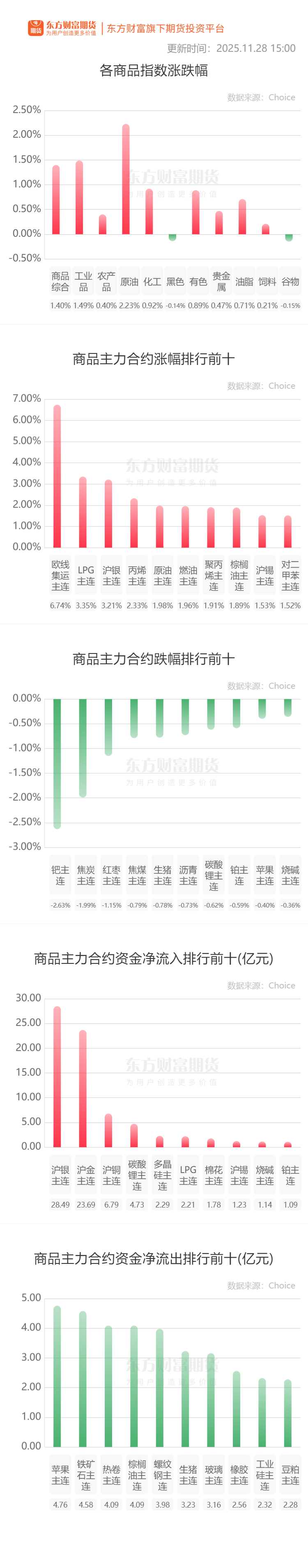 期市收评 | 商品期货多数上涨 原油系期货涨幅居前