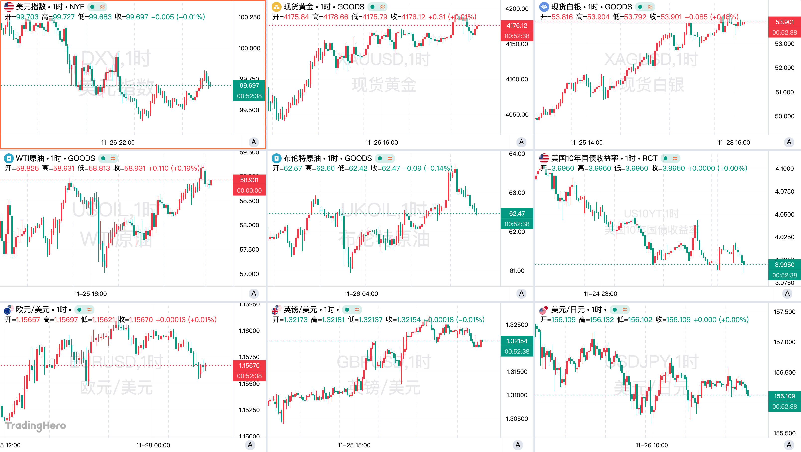 近期多位美联储官员公开支持降息,市场对 12 月降息 25 个基点的预期升至约 87%。就业走弱、消费者信心下降和通胀缺乏反弹是主要驱动。同时,市场认为哈塞特若出任主席,将推行特朗普期待的激进降息。尽管鸽派力量增强,美联储内部仍有官员担心通胀风险。