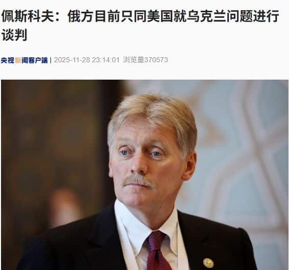 据央视新闻,当地时间 11 月 28 日,俄罗斯总统新闻秘书佩斯科夫表示,目前俄方只同美国就乌克兰问题进行谈判。