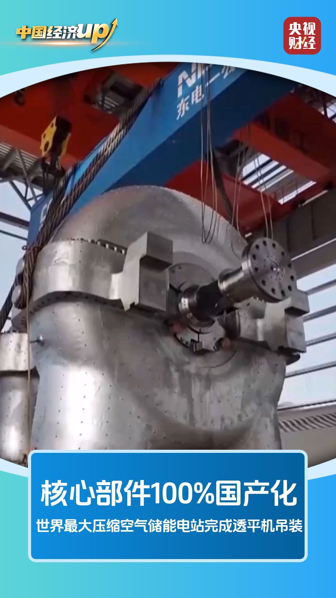 据央视新闻 11 月 29 日消息,11 月 27 日,世界最大压缩空气储能电站——华能金坛盐穴压缩空气储能二期项目顺利完成透平机吊装,正式进入主设备安装阶段。