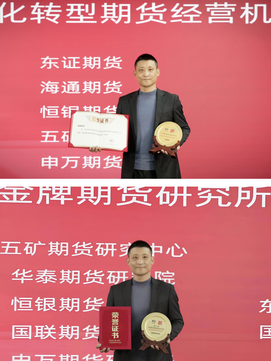 恒银期货首席策略分析师刘学思作为代表上台领奖