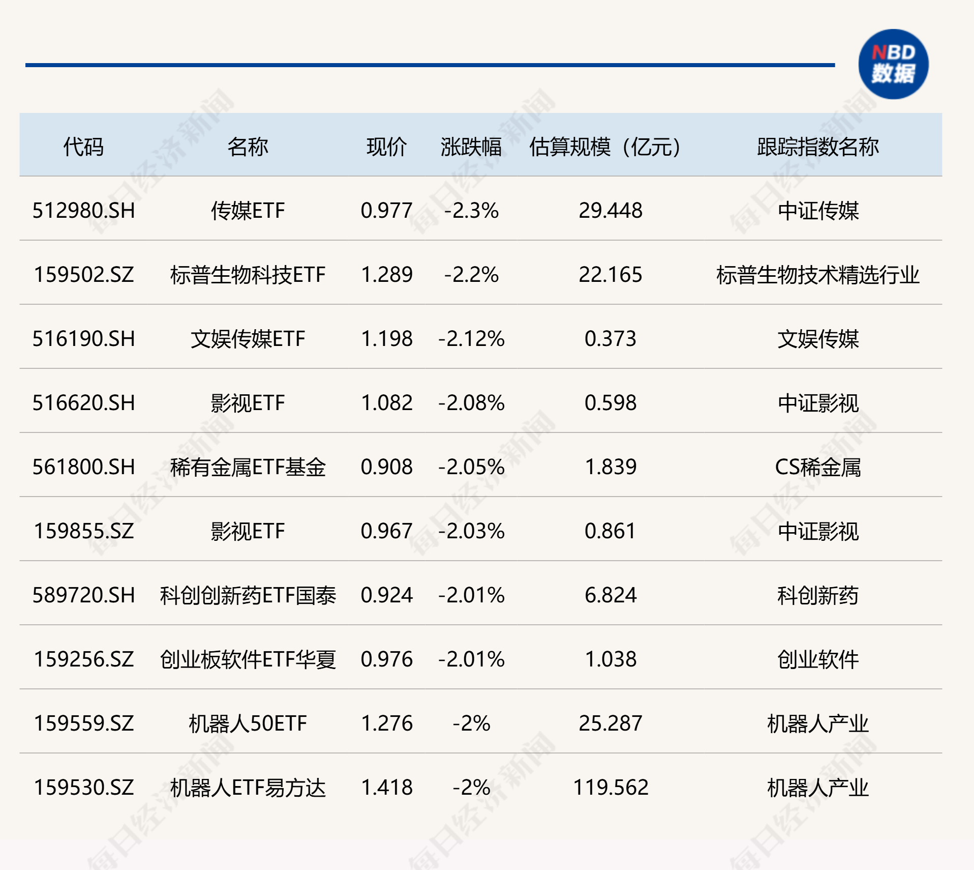 (原标题:ETF 今日收评 | 标普消费 ETF 涨超 2%,传媒 ETF 跌超 2%)