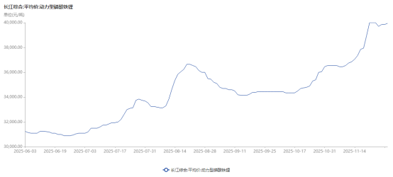 近期,磷酸铁锂不同类型产品价格均呈上涨态势。截至 12 月 1 日,长江有色金属网数据显示,动力型磷酸铁锂现货均价攀升至 39950 元/吨,价格区间在 38400 至 41500 元/吨。储能型磷酸铁锂现货均价同步上涨至 36950 元/吨,价格区间为 35300 至 38600 元/吨。上述两种类型产品单日涨幅均达 100 元/吨。