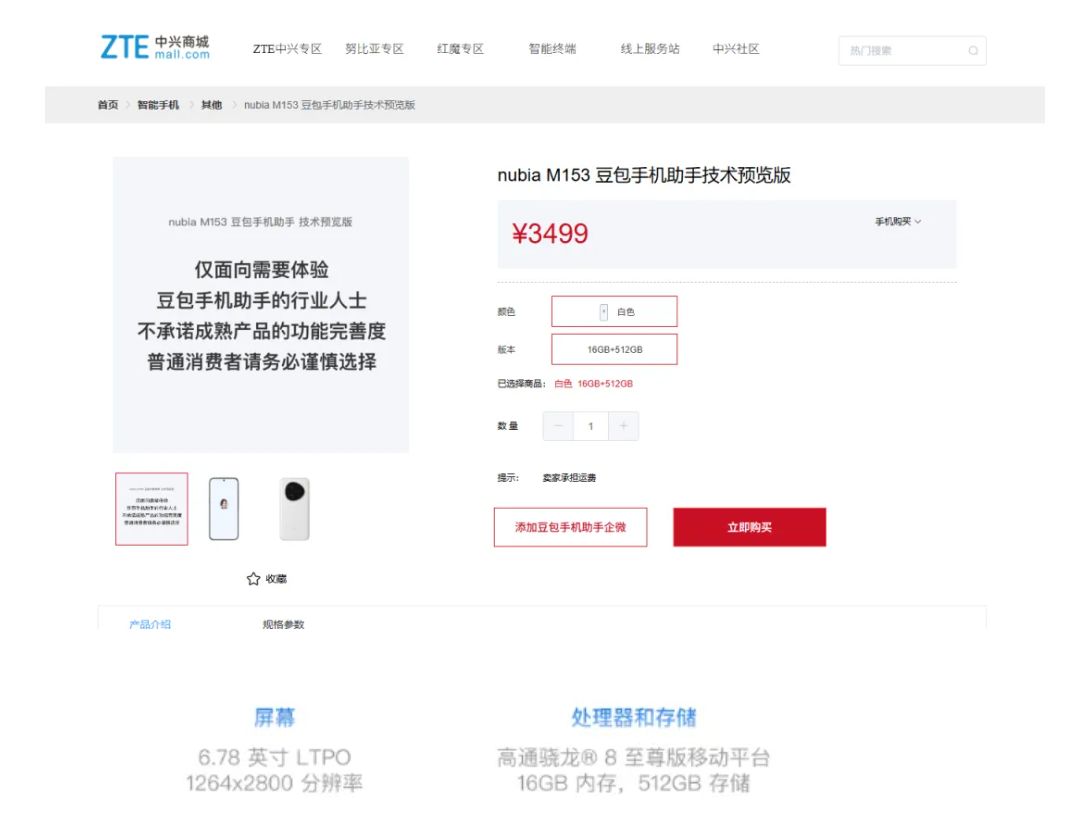 消息面上,今日上午,中兴通讯发布消息称,目前,搭载豆包手机助手技术预览版的工程样机努比亚 M153 少量发售,供开发者和感兴趣的朋友体验豆包手机助手。