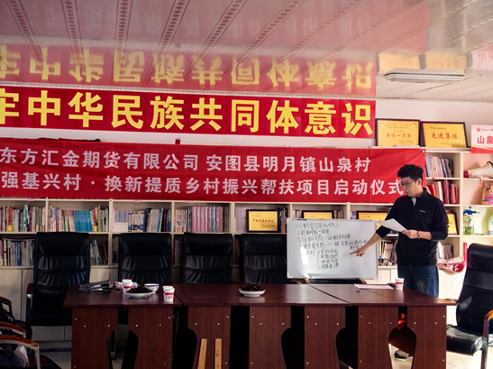 东方汇金期货对山泉村进行一对一帮扶的项目, 不仅包括积极落实村部改造,还包括为村里符合期货行业从业人员资质的优秀学子提供就业机会。仪式结束后,东方汇金期货还为当地村干部、农户等人员进行了一场期货知识的培训,现场答疑解惑和沟通交流,培训现场气氛热烈。