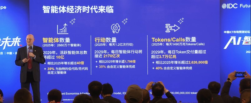 Rick Villars 指出:「智能体经济时代已经来临,2029 年,活跃智能体总数将超过 10 亿,相比 2025 年增长超过 40 倍,而且 39% 为独特的低代码/无代码自定义智能体。」