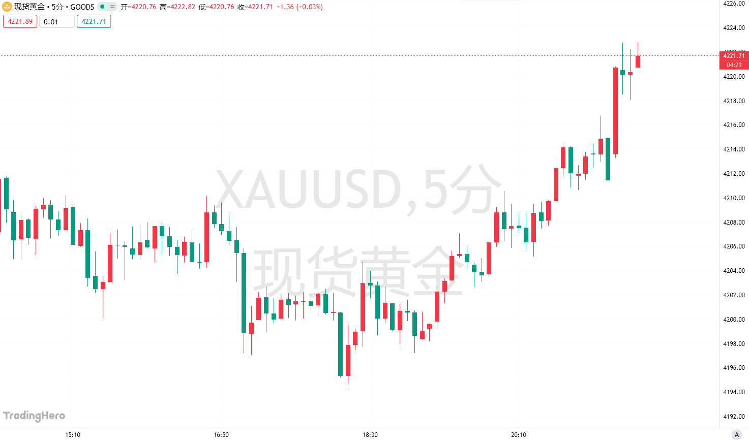 数据公布后,现货黄金小幅上涨,并重回 4220 美元。