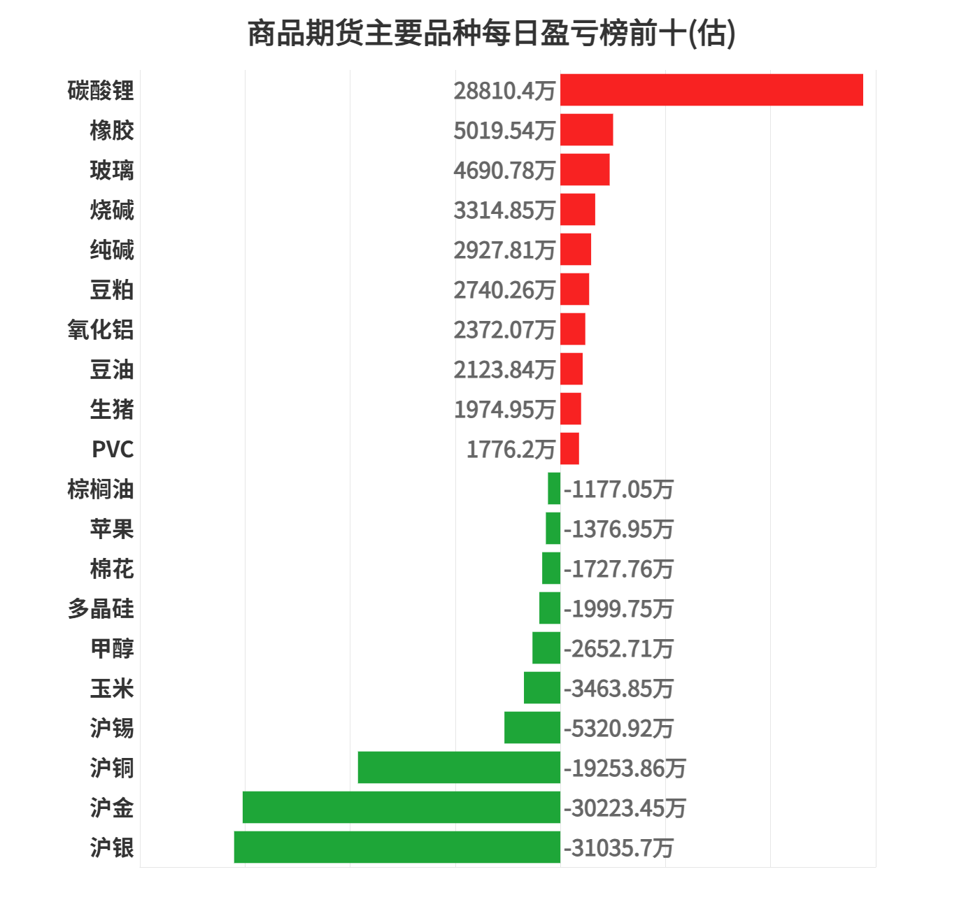 今日商品期货上榜机构席位中碳酸锂盈利第一,为 28810.40 万元。