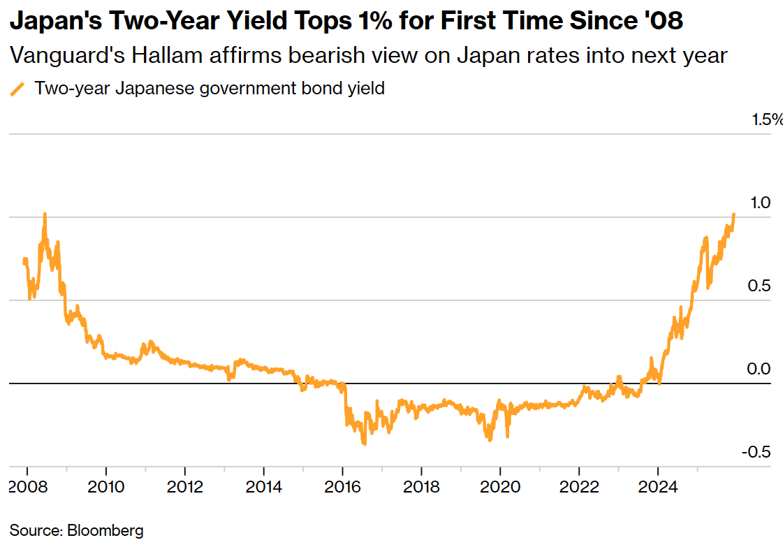 先锋集团对日本央行加息的预期也支撑了其观点,即日本短期利率债的表现将不及长期利率债,这是该公司以及包括三井住友信托银行和普信国际 (T. Rowe Price International) 在内的同行近几个月来所持有的观点。