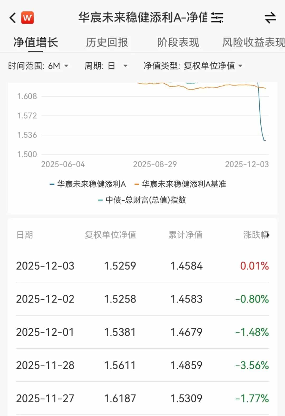 11 月 27 日至 12 月 2 日,华宸未来稳健添利债券基金连续四个交易日累计跌超 7.4%,给有 「稳稳的幸福」 之称的固收类产品带来冲击。