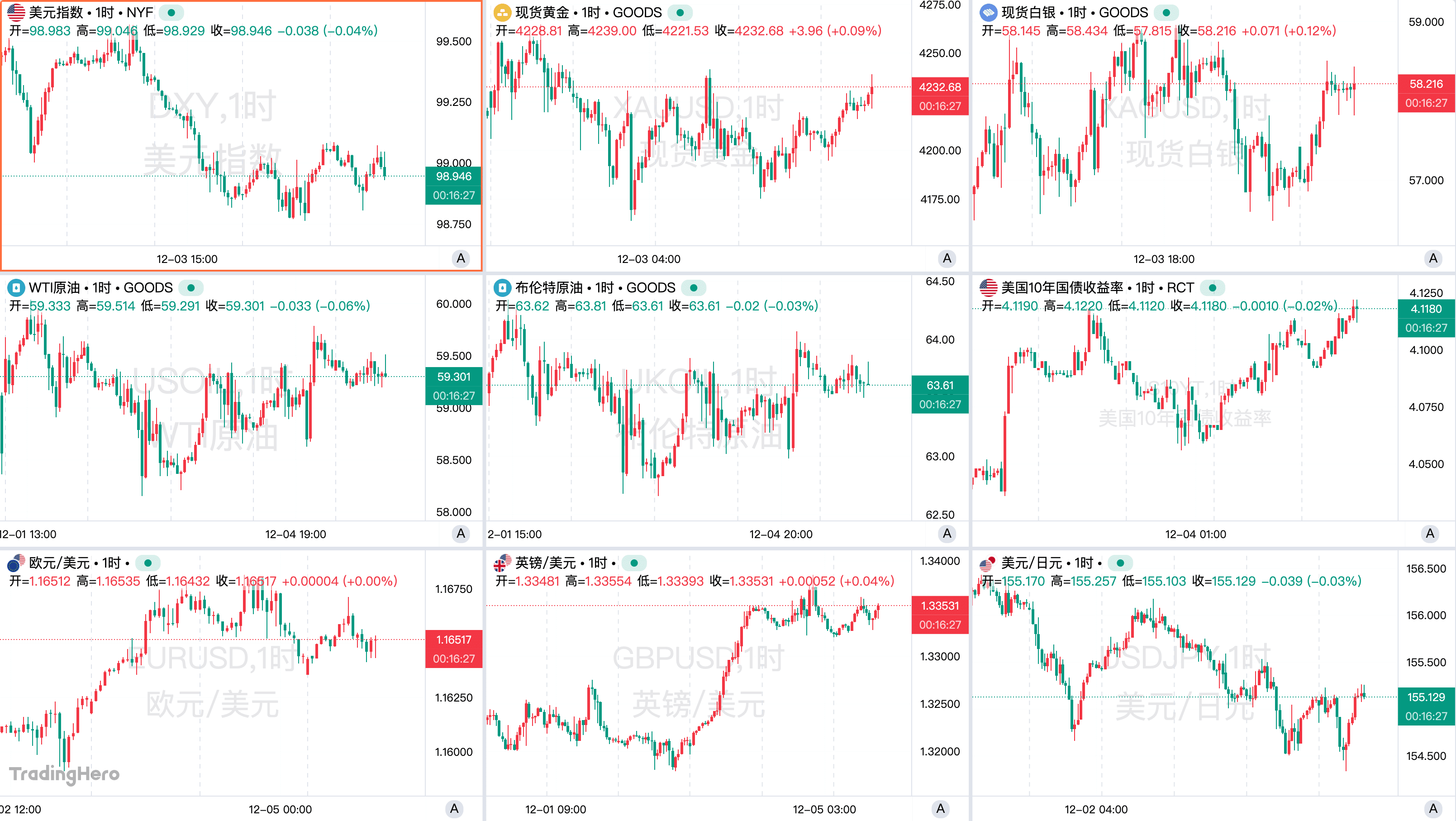本周数据显示,美国初请失业金人数降至 19.1 万,创三年新低,显示就业市场韧性。市场认为,这为美联储降息提供空间,12 月降息概率大增。交易员押注下周降息 25 基点的概率逾九成。哈塞特本周也表示,美联储似乎在下周降息 25 基点方面已经形成共识。