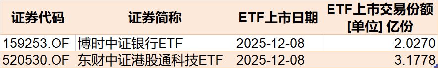 目前有 2 只 ETF 披露下周上市,跟踪标的为银行、港股科技等。