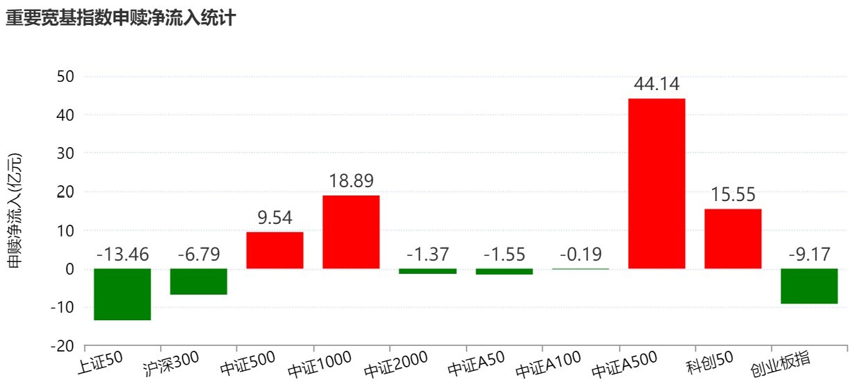 细分来看,主要宽基指数整体资金申赎统计显示,本周中证 A500 净流入 44.14 亿元,上证 50 净流出 13.46 亿元。