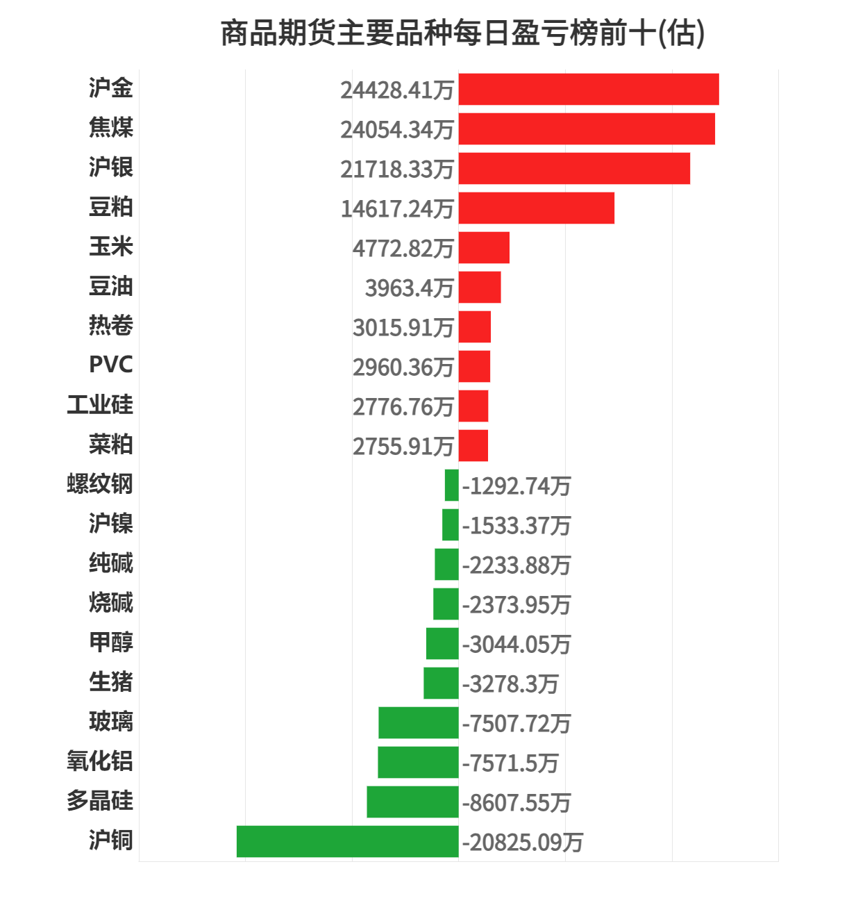 今日商品期货上榜机构席位中沪金盈利第一,为 24428.41 万元。
