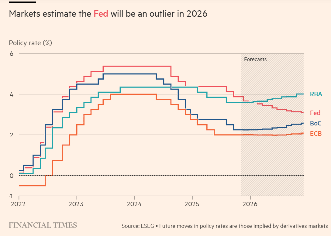市场预计美联储在 2026 年将成为异类