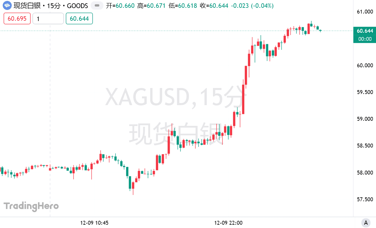 由于交易员押注美联储进一步放松货币政策以及供应持续紧张,周二现货白银首次突破 60 美元/盎司,创下历史新高,年内涨幅超过 31 美元或 108%。
