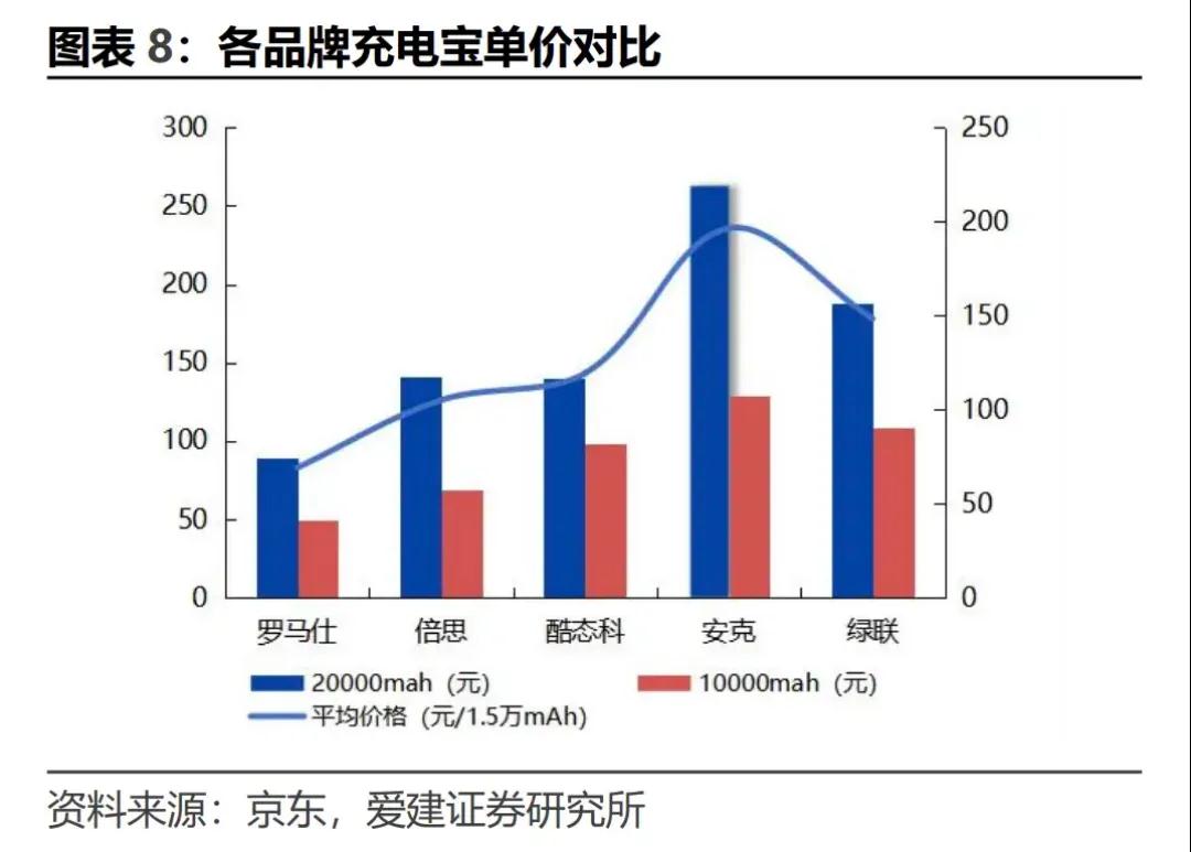 在充电宝风暴前,主打百元左右高性价比市场的罗马仕和倍思,稳居充电宝市场的第一梯队;其次是主打高端市场和海外市场的安克创新,平均售价在 150 元以上;最后则是以绿联、小米为代表,平均售价在 100-150 元之间的中端品牌。