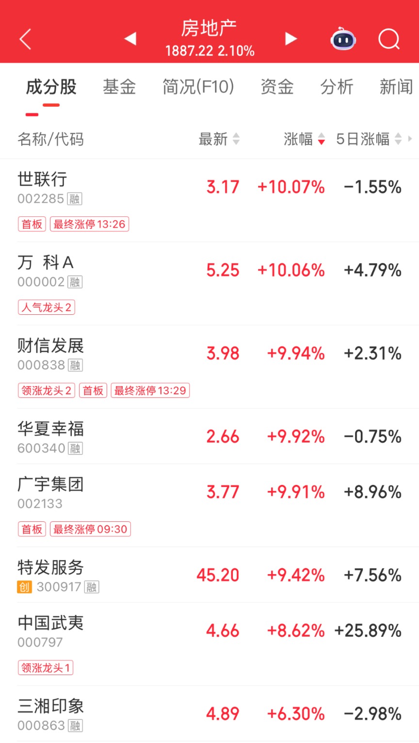 午后,地产股强势拉升。截至发稿,世联行、华夏幸福等多股涨停。