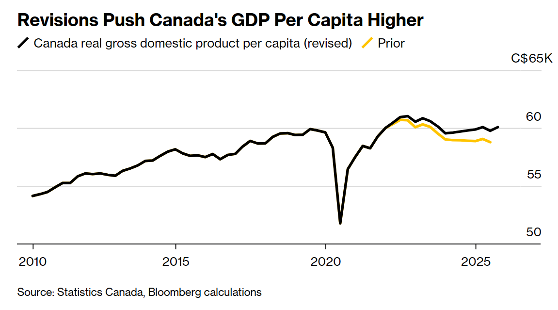 但受进口额大幅下降的支撑,第三季度 GDP 按年率计算增长了 2.6%。房屋销售正在复苏,而加拿大总理卡尼 (Mark Carney) 的财政支出——包括大规模国防设备采购——已在数据中显现。