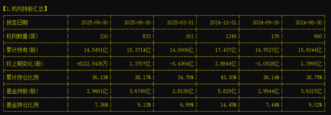 截至三季度,中兴通讯仍是机构重仓股之一,约有 210 家机构持有 14.55 亿股。但较上一季度,减持约 8222 万股。