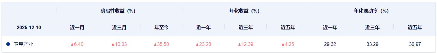 进一步对比两个指数的过往表现,在近一年和近三年,国证商用卫星通信产业指数的年化收益均高于中证卫星产业指数,不过在近五年,中证卫星产业指数的年化收益高于国证商用卫星通信产业指数。
