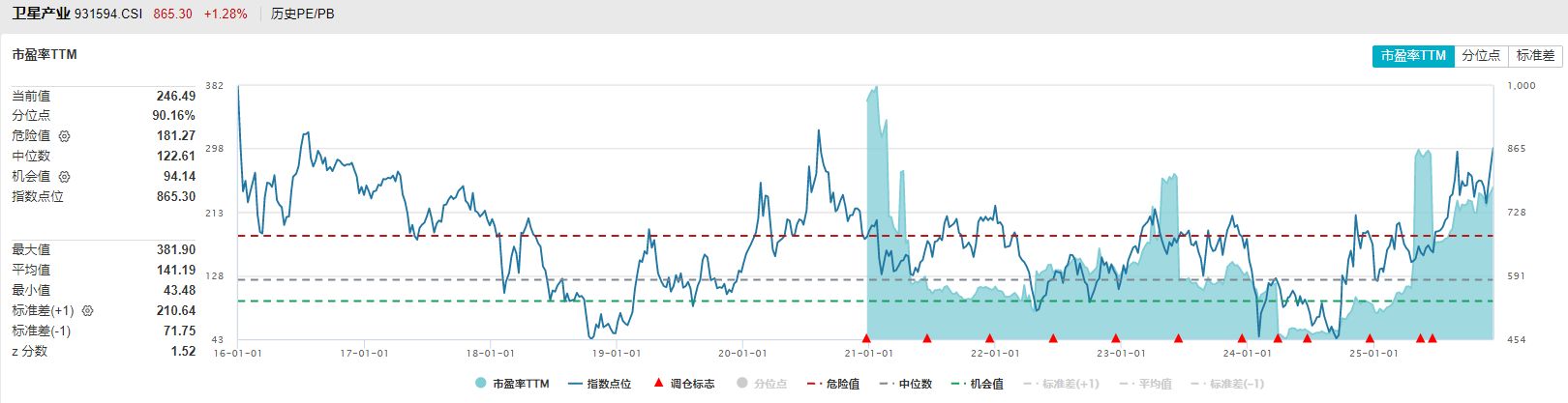 而中证卫星产业指数的市盈率 TTM 处在历史 90% 分位以上,不过实际的数据是从 2021 年初开始,因此可对比数据的时间区间实际上也还不到 5 年,只能说是近 5 年来估值相对比较高的位置。