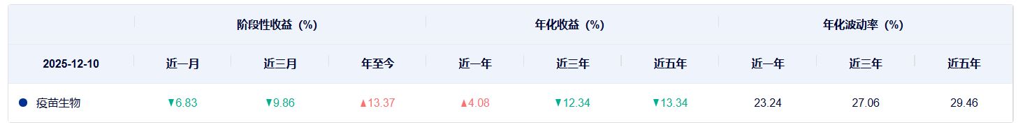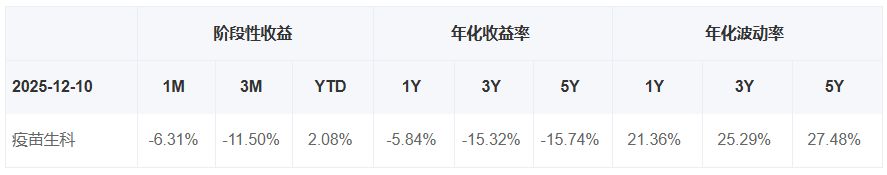 再对比两个指数的过往表现,从近一年、近三年到近五年,中证疫苗与生物技术指数的年化收益都好于国证疫苗与生物科技指数,不过两个指数近三年和近五年的年化收益均是负数。