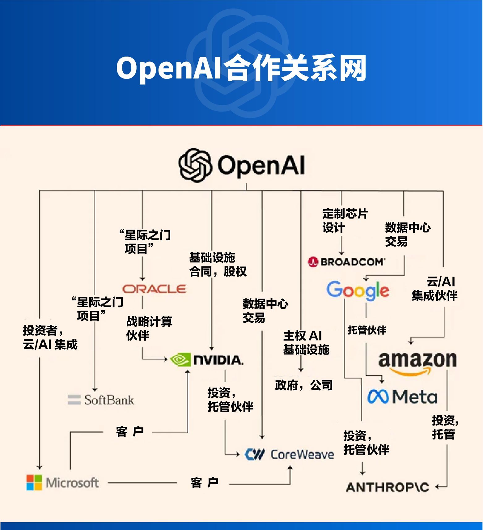 相比之下,英伟达通过销售芯片和战略投资早已锁定收益,而 OpenAI 则以长期合同换取了算力和资金,二者均处于相对有利的位置。