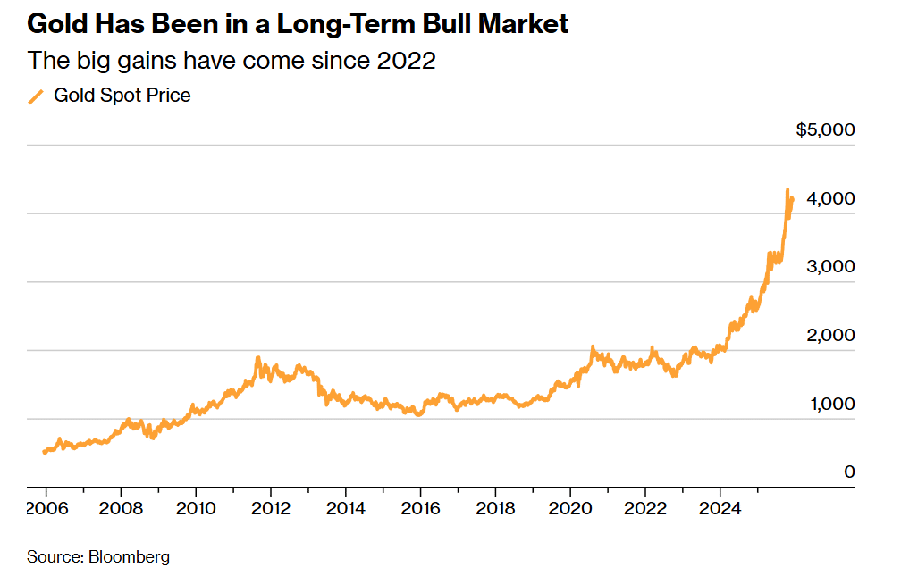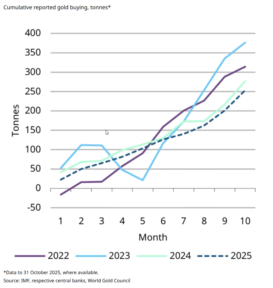 黄金需求主要由对冲美元敞口的各国央行主导,这一需求帮助金价稳固在 4000 美元/盎司上方。