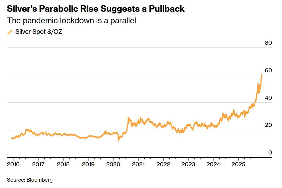 白银的抛物线式上涨预示着回调即将到来