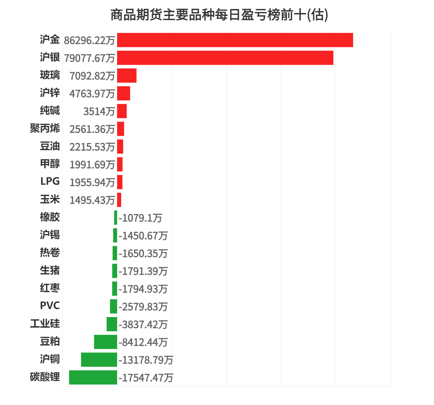 今日商品期货上榜机构席位中沪金盈利第一,为 86296.22 万元。