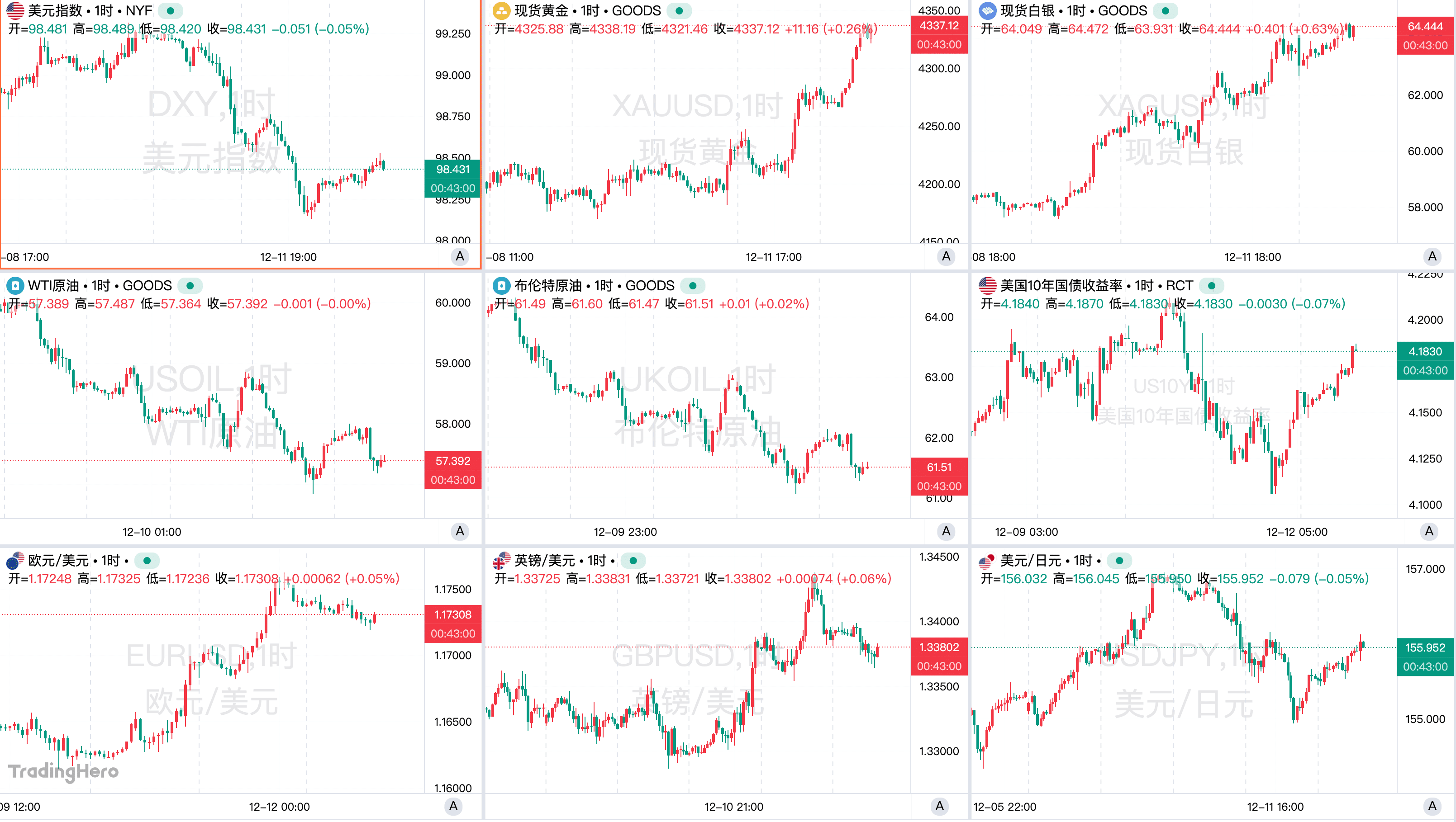 现货黄金整体震荡走强,连续四个交易日录得上涨,周五在美元走弱与避险情绪推动下一度突破 4330 美元/盎司关口,触及一个多月高位。白银表现更为强势,本周在供应偏紧背景下连续四天刷新历史高点。