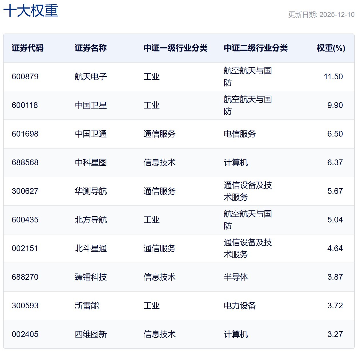 中证卫星产业指数选取 50 只业务涉及卫星制造、卫星发射、卫星通信、卫星导航、卫星遥感等领域的上市公司证券作为指数样本,反映卫星产业上市公司证券的整体表现。