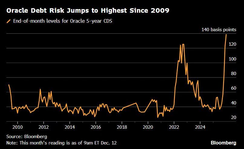 截至 12 月 12 日,甲骨文五年期信用违约掉期已升至 2009 年以来最高点