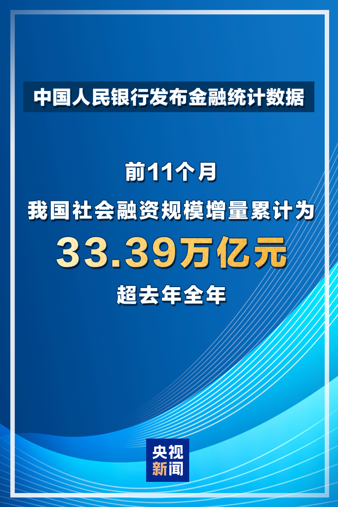 初步统计,2025 年前十一个月社会融资规模增量累计为 33.39 万亿元,超去年全年。