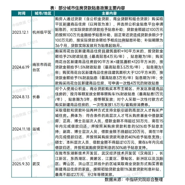 为激活房地产市场,自 2023 年末以来,杭州、南京、长春、运城、武汉等多地相继推出购房贴息政策,通过财政补贴部分贷款利息的方式降低购房成本。
