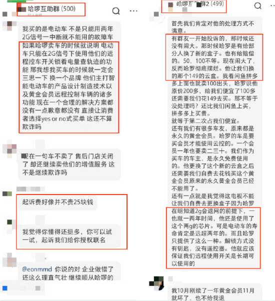 但根据用户的反馈,他们在购买时并未被告知 「采用 2G 通信」,如今买车仅一年有余,却需要自费升级。此外,曾经的权益因网络不畅一并被取消。
