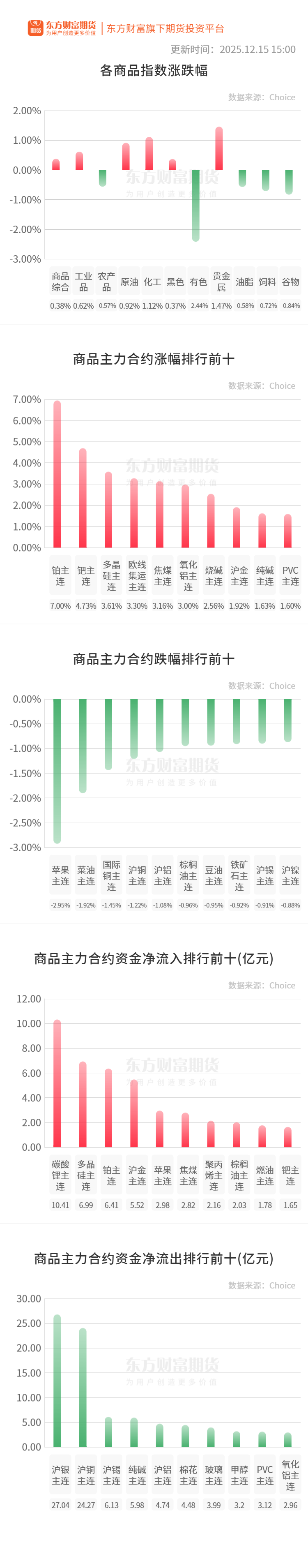 钢材:中央重要会议召开后,多部门集中部署 2026 年重点任务,包括多措并举促进投资止跌回稳,综合整治 「内卷式」 竞争等,明年还将根据形势变化出台实施增量政策。宏观政策仍有发力空间,有助于稳定市场情绪。周一焦煤期货大幅反弹,成本端对钢价有一定支撑。不过,钢市供需基本面压力逐步加大,淡季供需两弱,库存去化放慢。短期来看,钢价或窄幅调整运行。(我的钢铁网)
